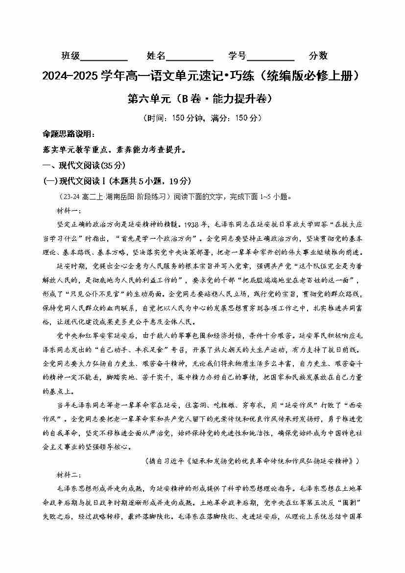 首页 > 全部 > 单元AB卷 > 第六单元(B卷·能力提升卷)学生版