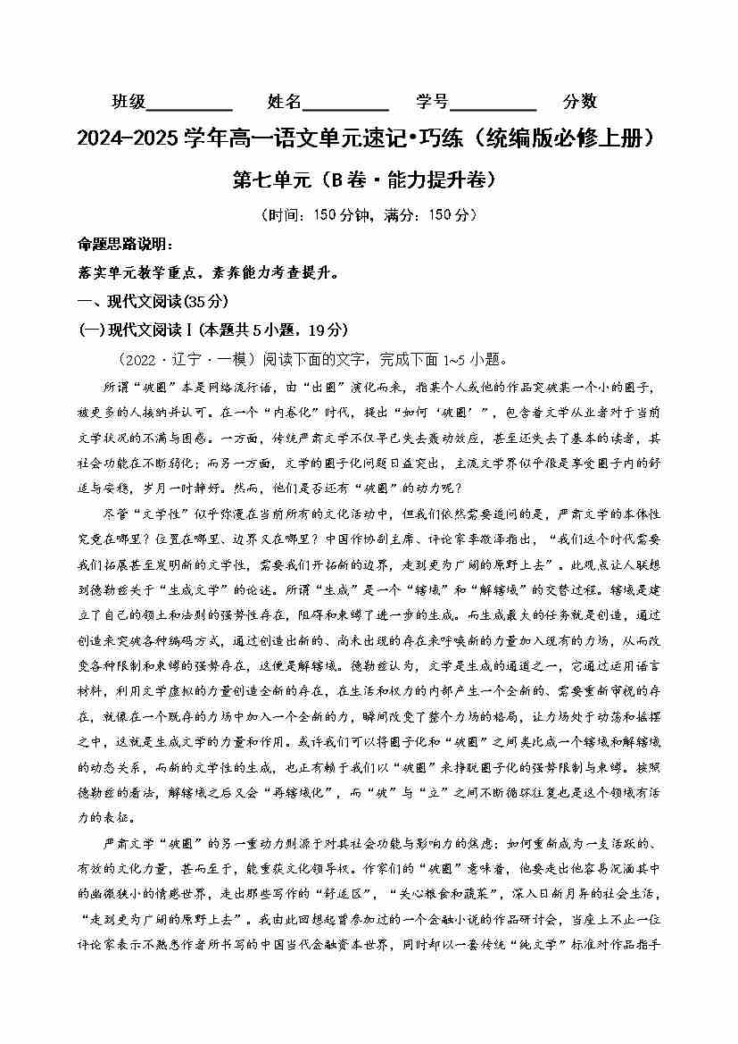 首页 > 全部 > 单元AB卷 > 第七单元(B卷·能力提升练)教师版