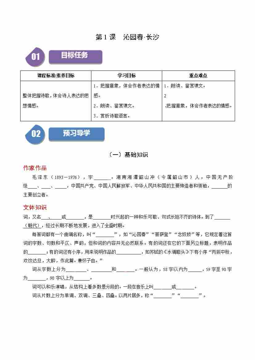 第1课 沁园春·长沙(学生版)