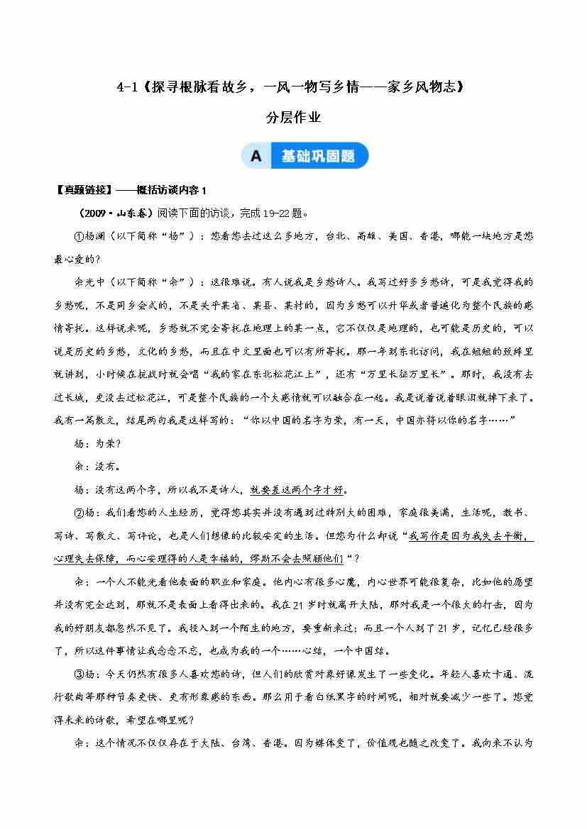 首页 > 全部 > 分层作业 > 4.1 探寻根脉看故乡,一风一物写乡情——家乡风物志(主题任务式分层作业)(原卷版)