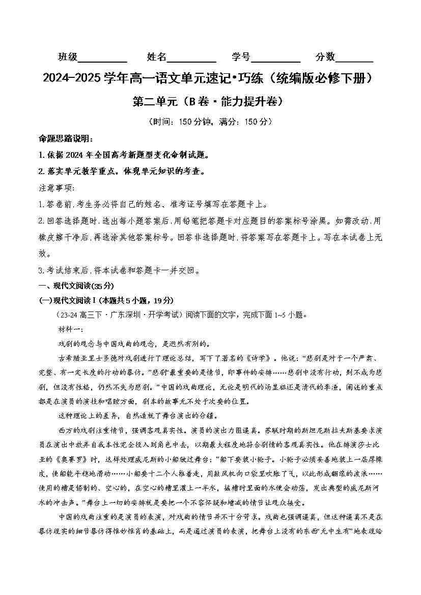 首页 > 全部 > 单元AB卷 > 第二单元(B卷·能力提升练)教师版