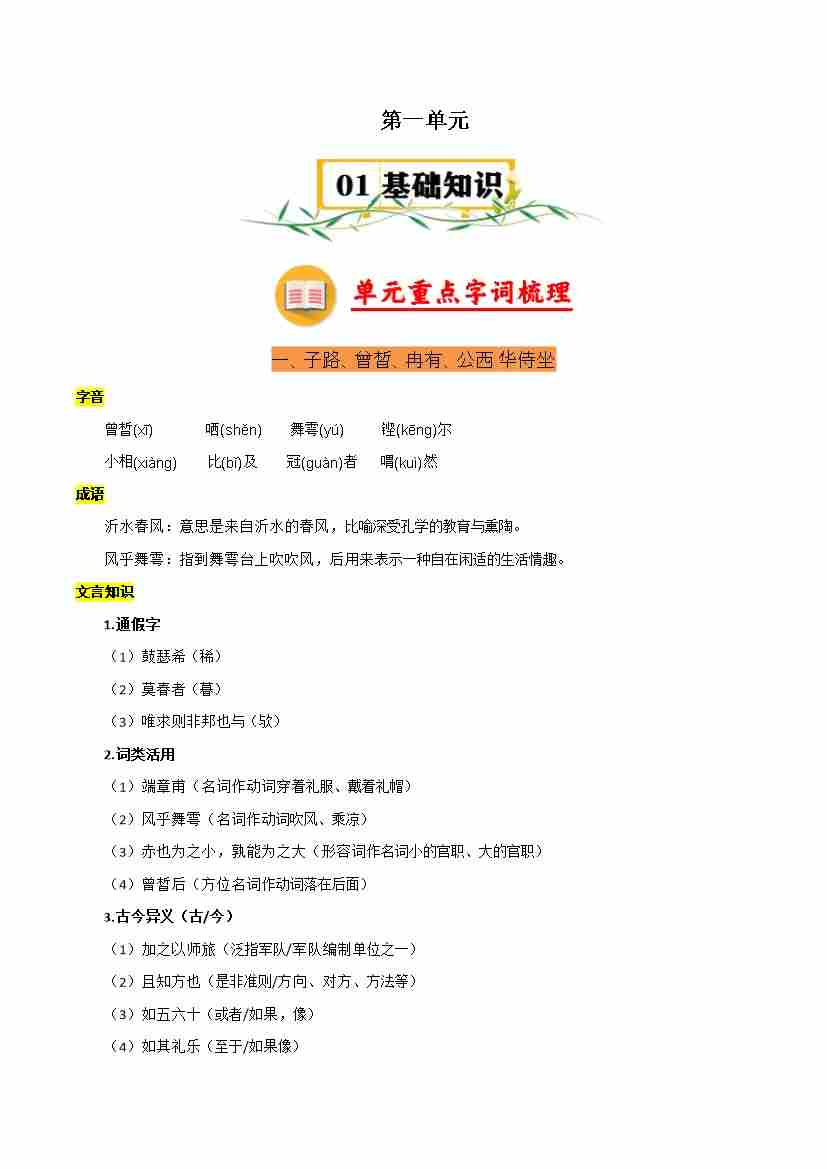 首页 > 全部 > 知识梳理 > 第一单元(知识清单)-高一语文单元速记•巧练(统编版必修下册)
