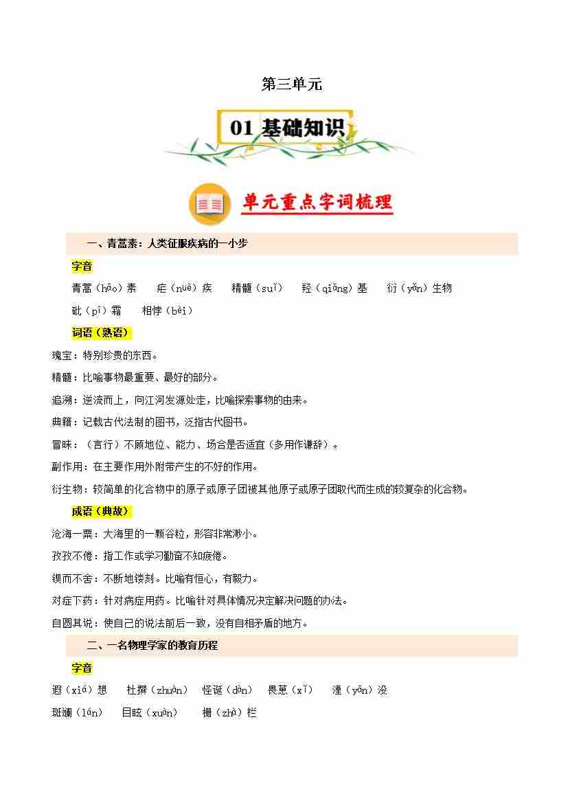 首页 > 全部 > 知识梳理 > 第三单元(知识清单)-高一语文单元速记•巧练(统编版必修下册)