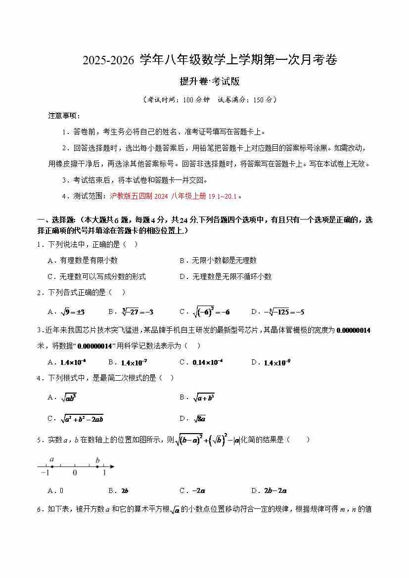 首页 > 全部 > 月考试卷 > 八年级数学上学期第一次月考( 高效培优·提升卷)(考试版A4)