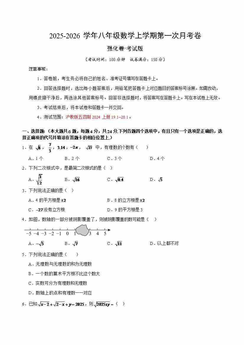 八年级数学上学期第一次月考( 高效培优·强化卷)(考试版A4)