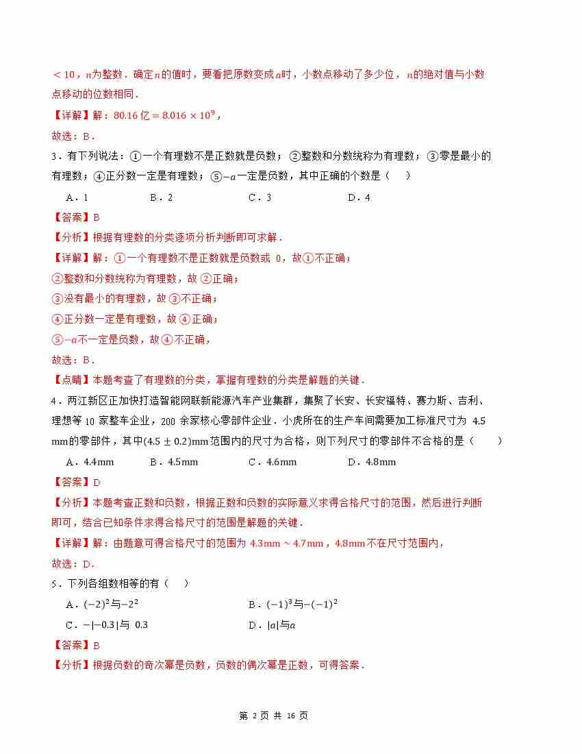 首页 > 全部 > 第一次月考 > 2025七上数学第一次月考卷(人教版2024)(全解全析)A4版