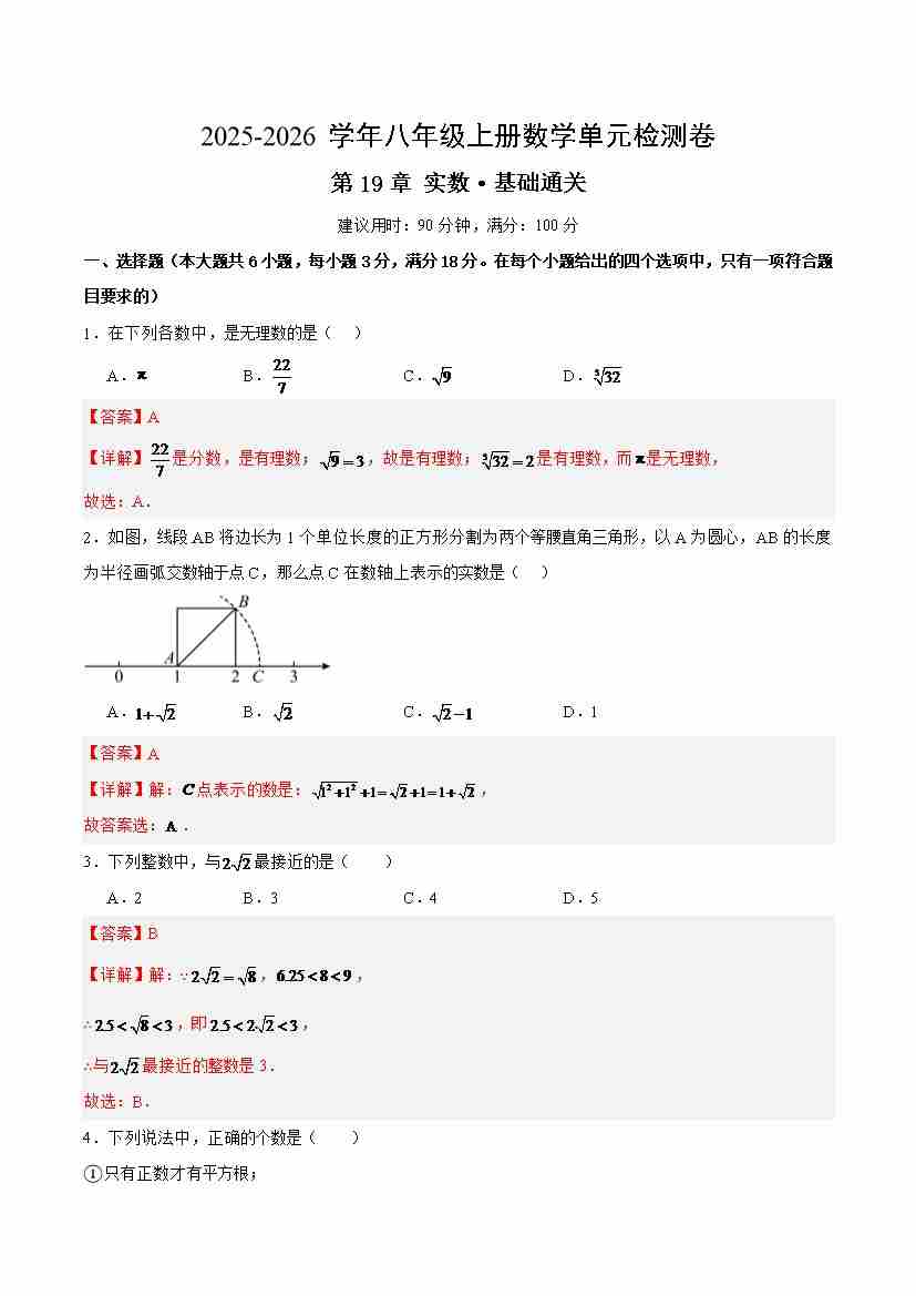 第19章 实数(单元测试·基础卷)(解析版)