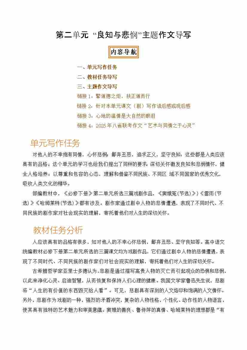 首页 > 全部 > 单元作文 > 专题02:“良知与悲悯”主题作文导写-(统编版必修下册)