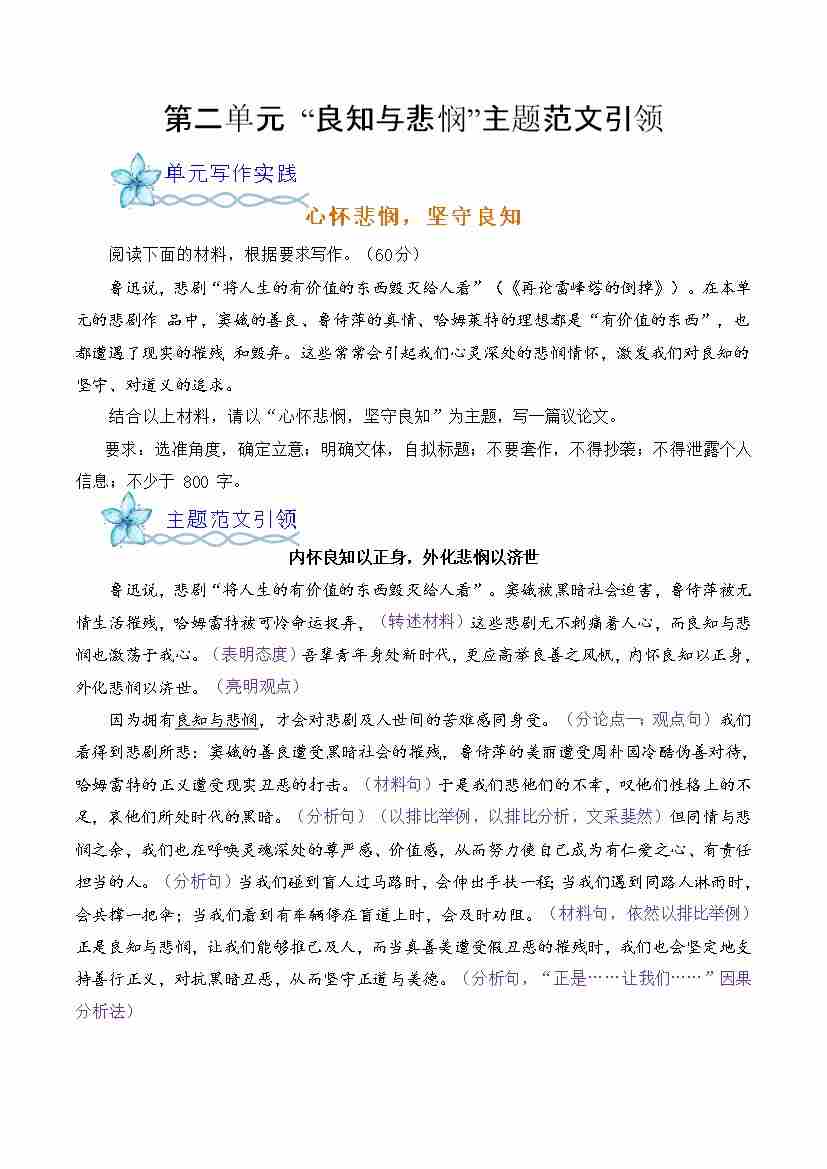 首页 > 全部 > 单元作文 > 专题04: ”良知与悲悯“主题范文引领-(统编版必修下册)