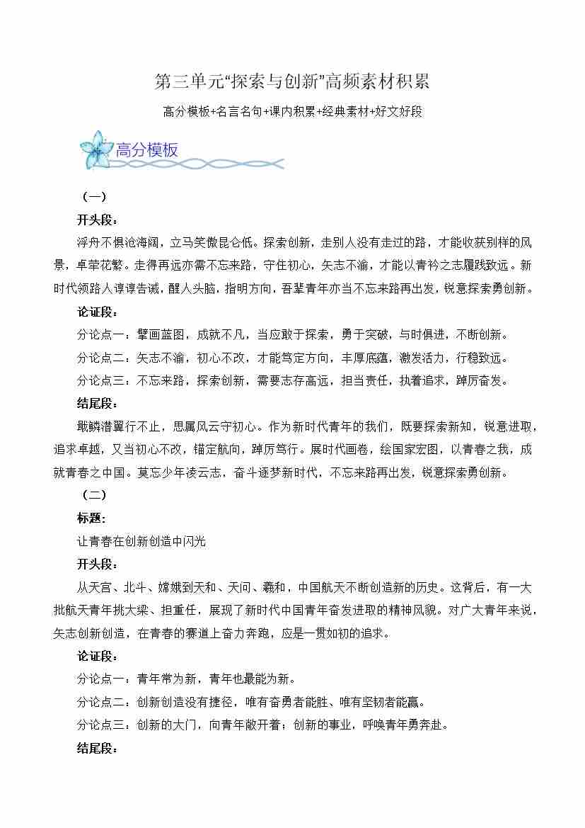 首页 > 全部 > 单元作文 > 专题03:“探索与创新”高频素材积累-(统编版必修下册)