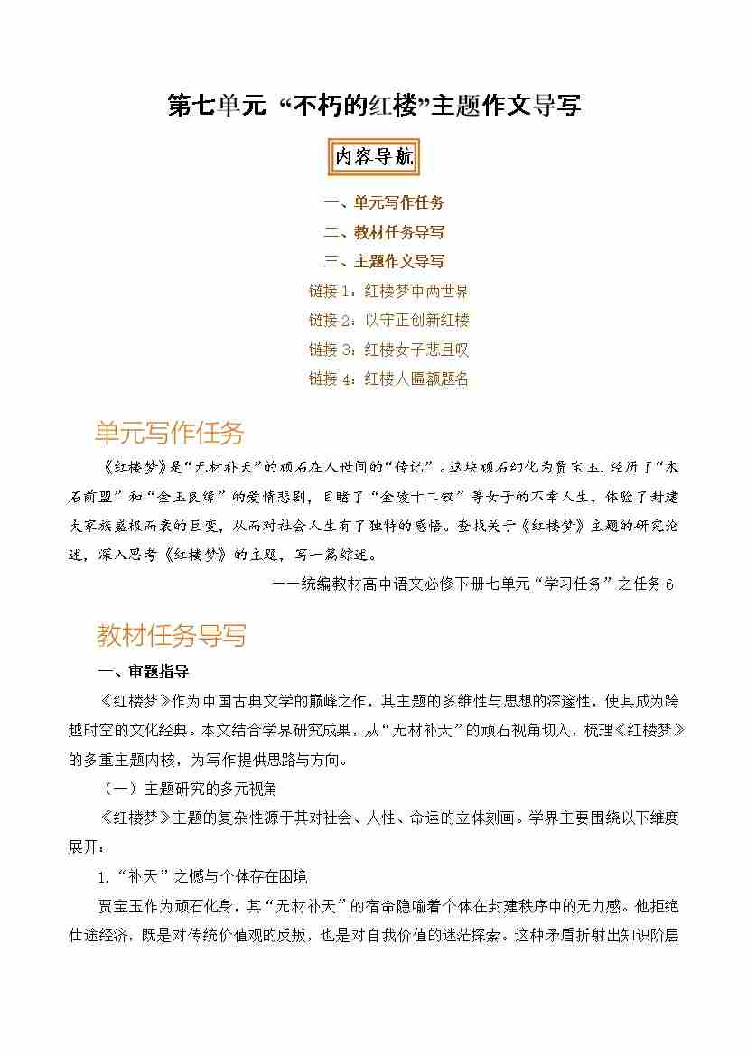 首页 > 全部 > 单元作文 > 专题02:“不朽的红楼”主题作文导写-(统编版必修下册)