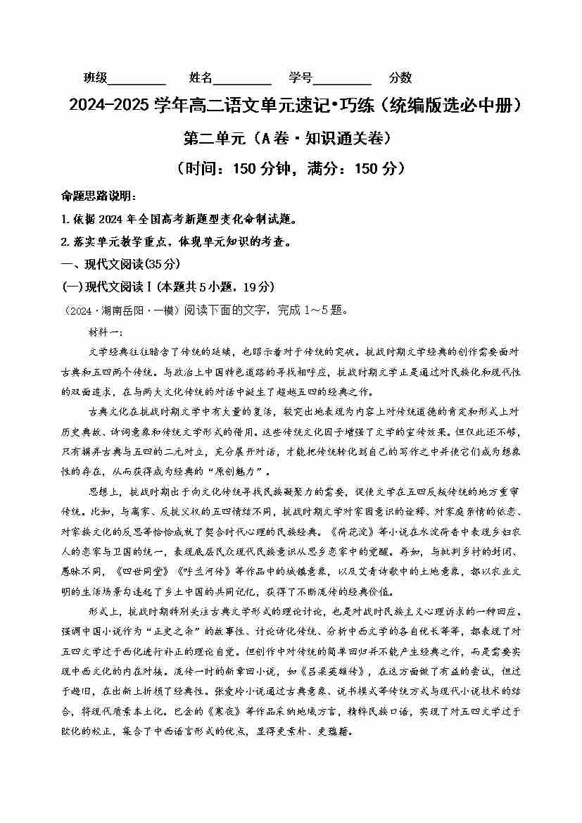 首页 > 全部 > 单元AB卷 > 第二单元(A卷·知识通关卷)教师版2