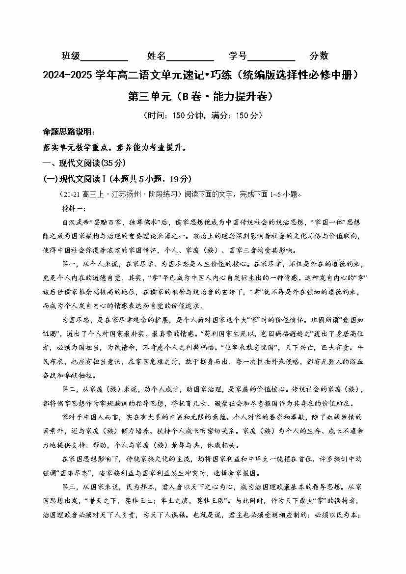 首页 > 全部 > 单元AB卷 > 第三单元(B卷·能力提升卷)学生版