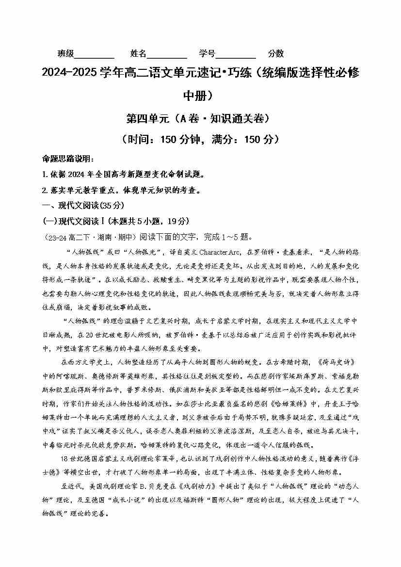 首页 > 全部 > 单元AB卷 > 第四单元(A卷·知识通关卷)学生版1