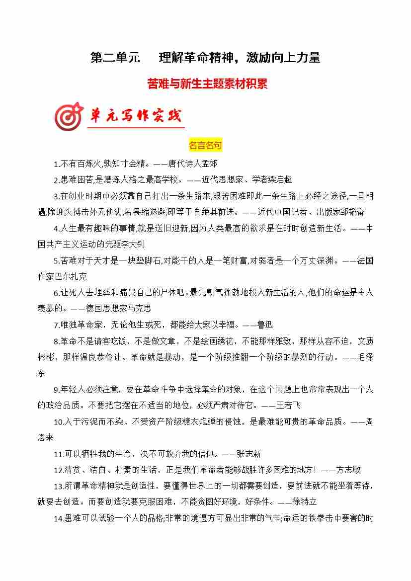 首页 > 全部 > 单元作文 > 专题01:”苦难与新生“主题素材积累(统编版选必中册)