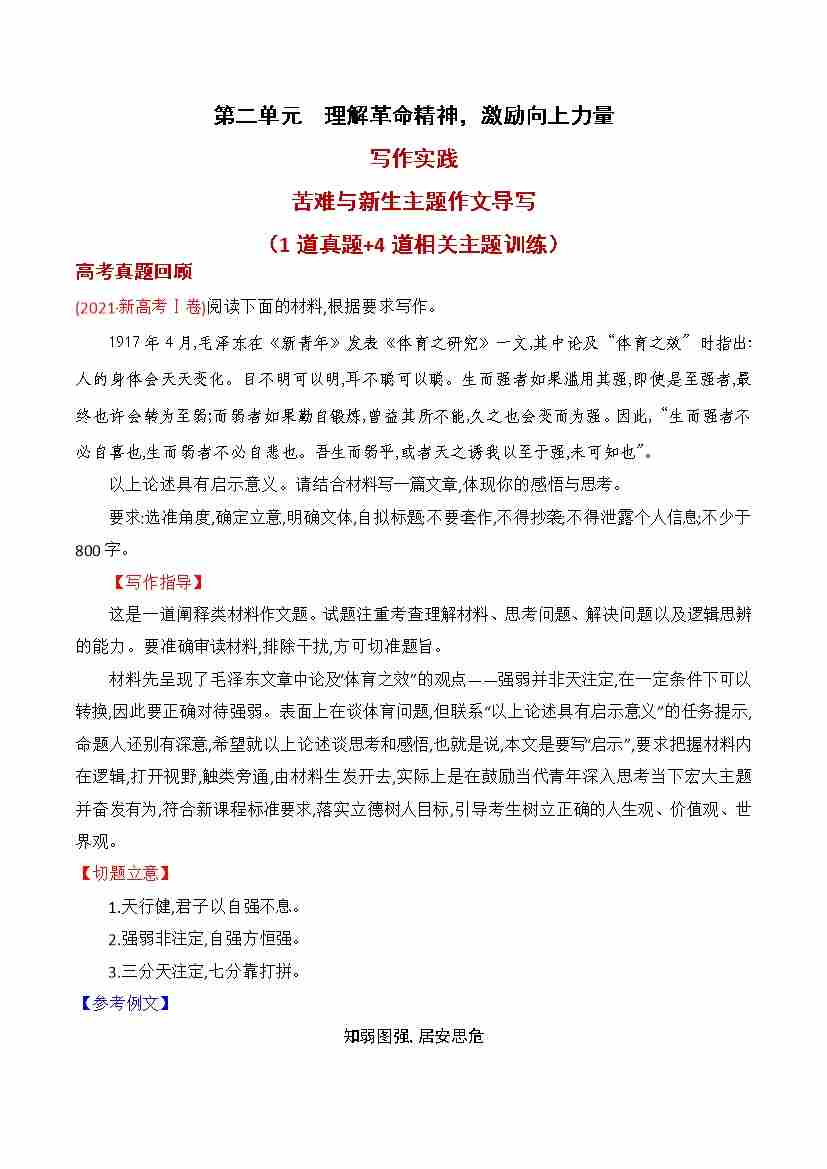 首页 > 全部 > 单元作文 > 专题04:“苦难与新生”主题作文导写(统编版选必中册)(教师版)