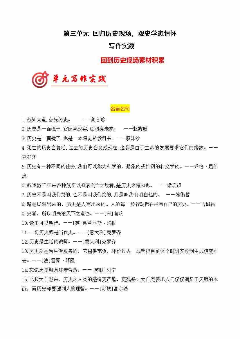 首页 > 全部 > 单元作文 > 专题01:”素材积累(统编版选必中册)