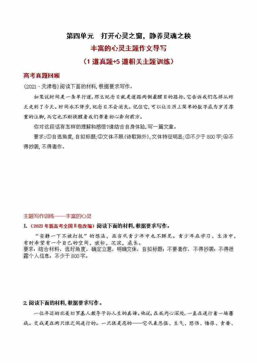 首页 > 全部 > 单元作文 > 专题04 “丰富的心灵”主题作文导写(统编版选必中册)(学生版)