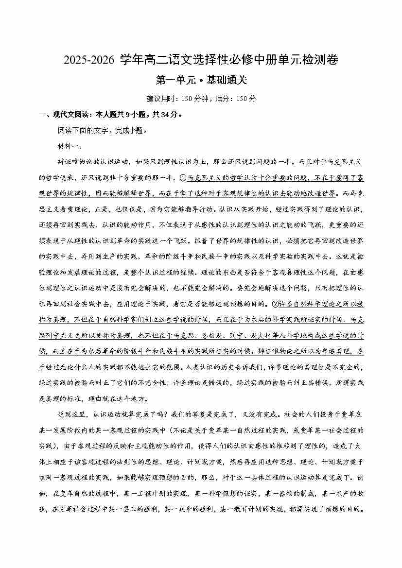 首页 > 全部 > 单元基础卷 > 高二选必中语文第一单元·基础卷(教师版)