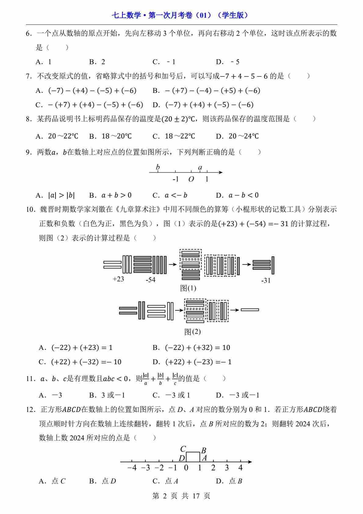 首页 > 全部 > 第一次月考 > 2025七上数学第1次月考01【第1-2章】