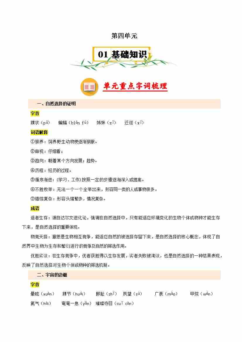 第四单元(知识清单)-高二语文单元速记•巧练(统编版选必)