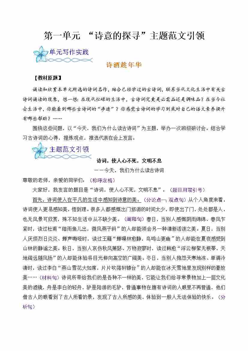首页 > 全部 > 单元作文 > 专题04:”诗意的探寻“主题范文引领-(统编版选必下册)