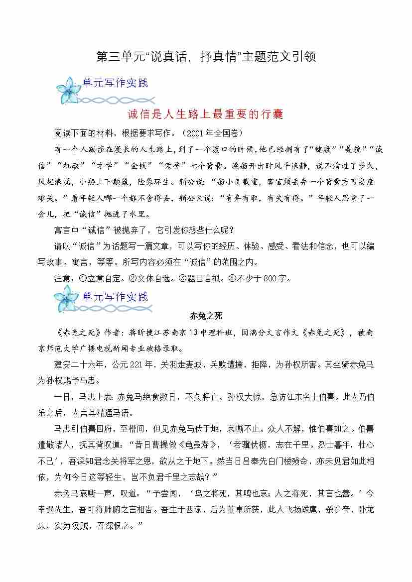 首页 > 全部 > 单元作文 > 专题04:”说真话,抒真情“主题范文引领-(统编版选必下册)