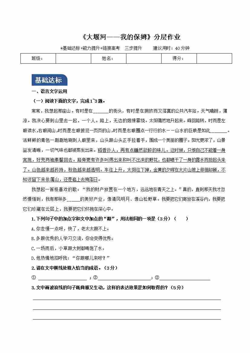 《大堰河——我的保姆》(分层作业)(原卷版)