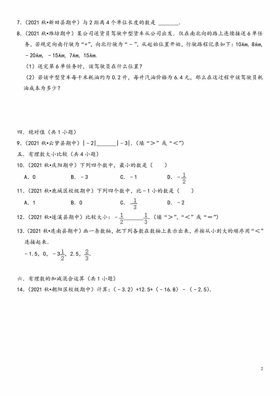 首页 > 全部 > 期中试卷 > 七年级数学上学期期中【夯实基础60题考点专练】(原卷版)(人教版)