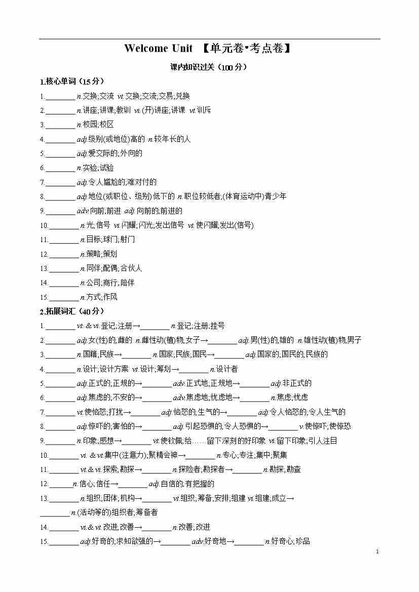首页 > 全部 > 单元提升卷 > Welcome Unit【单元卷•考点卷】-2024-2025学年高一英语单元速记•巧练(人教版2019必修第一册)(原卷版)