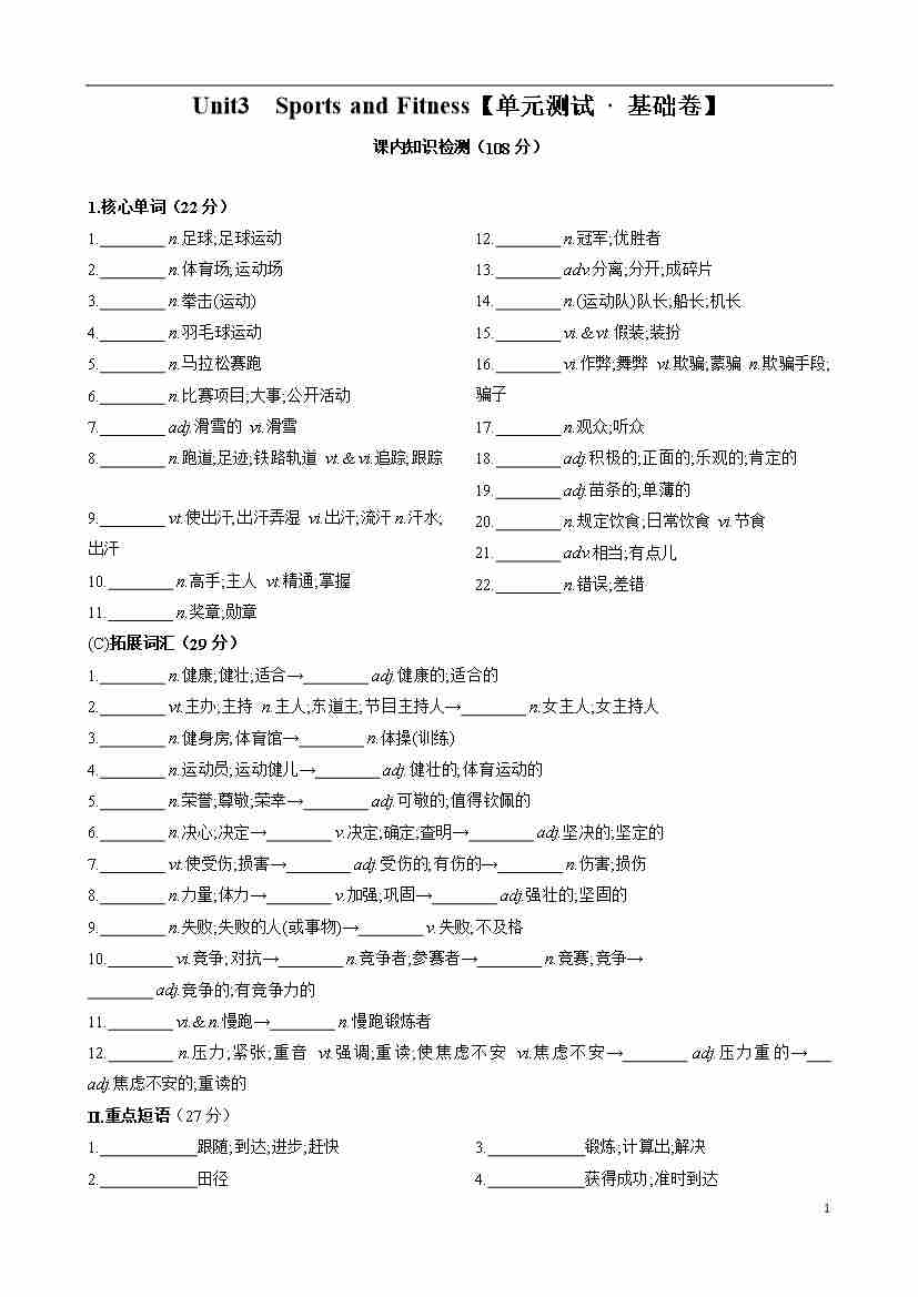 Unit3 Sports and Fitness【单元测试 · 基础卷】(原卷版)