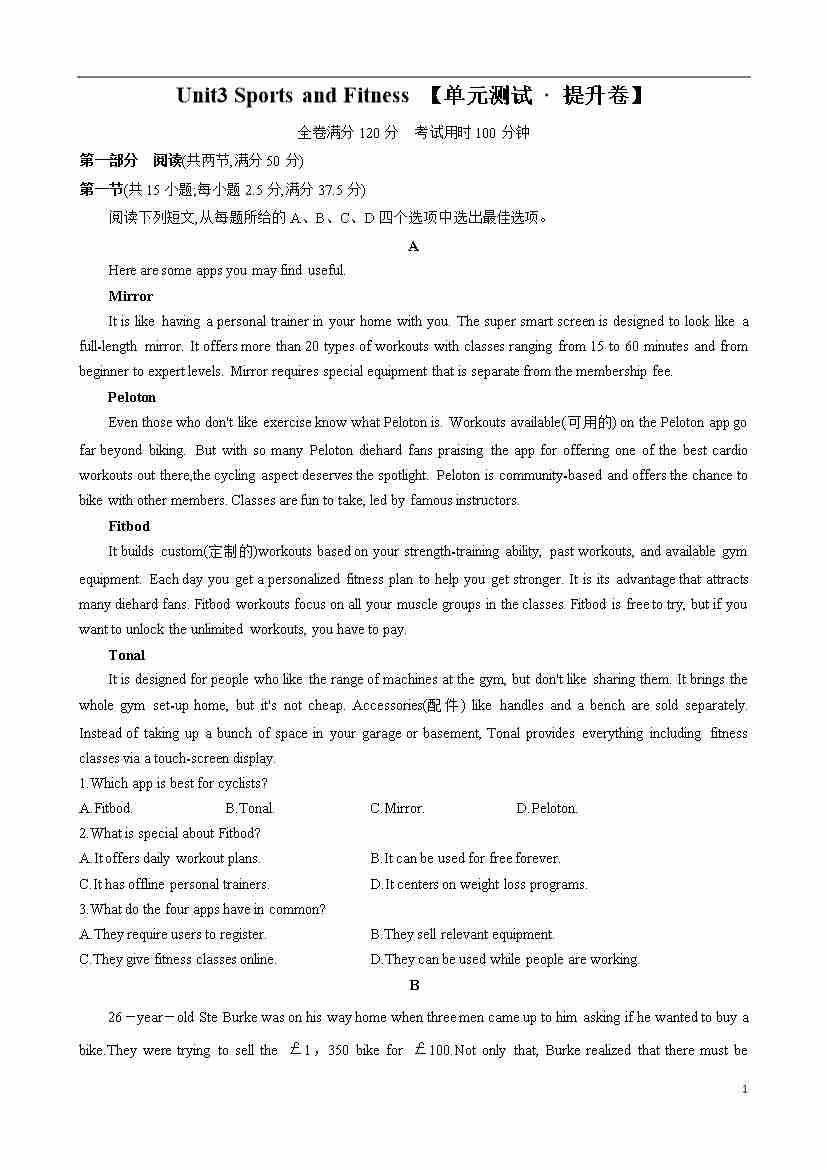 Unit3 Sports and Fitness【单元测试 · 提升卷】(原卷版)