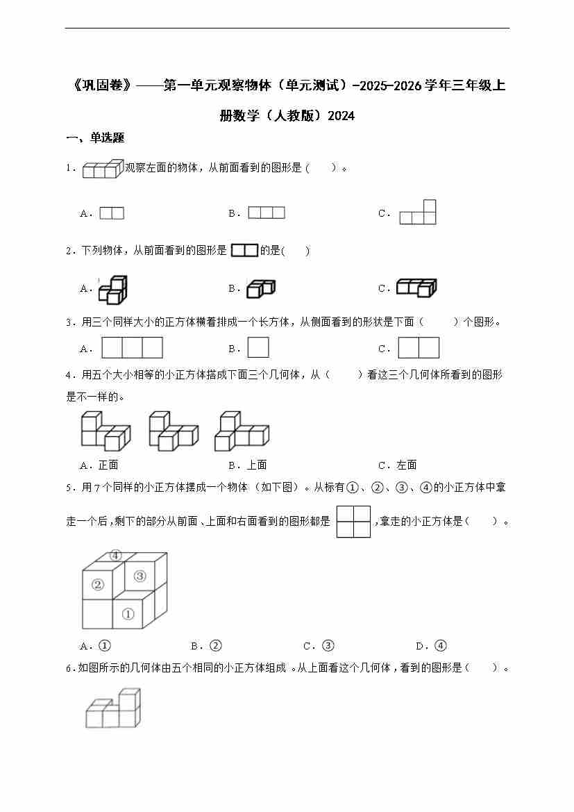 首页 > 全部 > 单元测试 > 《巩固卷》——第一单元观察物体(含解析)
