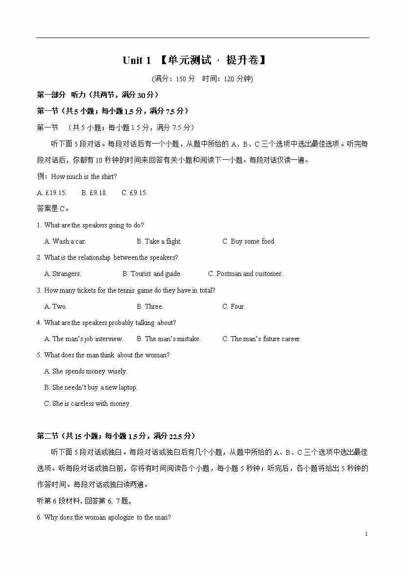 首页 > 全部 > 单元地区卷 > Unit 1 【单元测试 · 提升卷】-2024-2025学年高一英语单元速记•巧练(人教版2019必修第二册)(解析版)