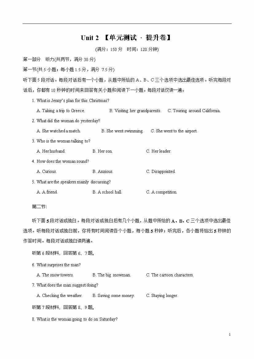 首页 > 全部 > 单元地区卷 > Unit 2 【单元测试 · 提升卷】-2024-2025学年高一英语单元速记•巧练(人教版2019必修第二册)(解析版)