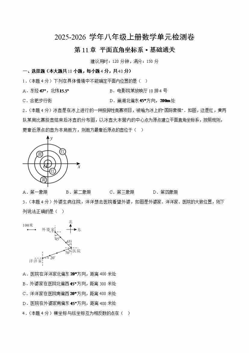 第11章 平面直角坐标系 测试·基础卷(考试版A4)