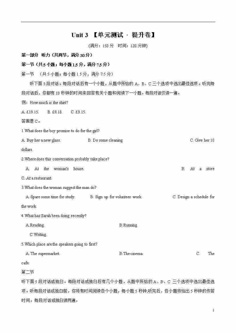 Unit 3 【单元测试 · 提升卷】-2024-2025学年高一英语单元速记•巧练(人教版2019必修第二册)(原卷版)