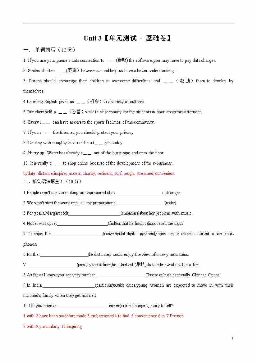 首页 > 全部 > 单元地区卷 > Unit 3【单元测试 · 基础卷】-2024-2025学年高一英语单元速记•巧练(人教版2019必修第二册)(解析版)