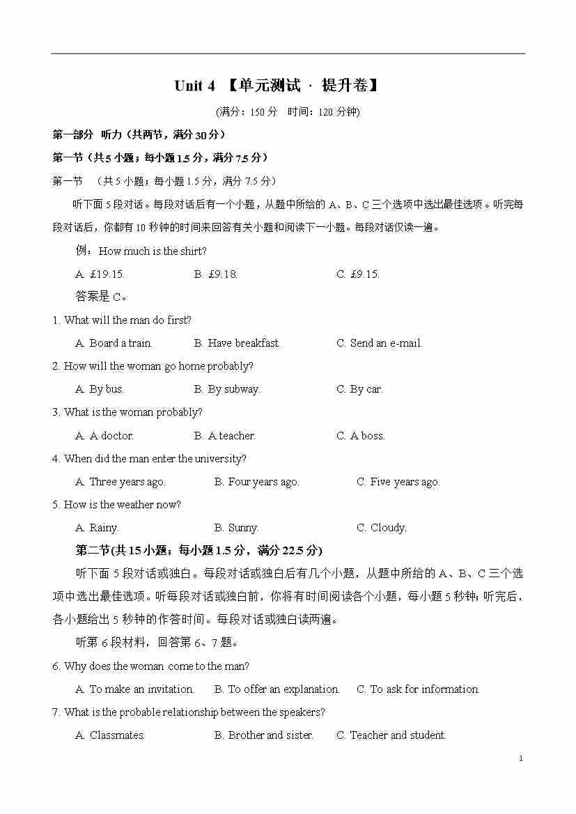首页 > 全部 > 单元地区卷 > Unit 4 【单元测试 · 提升卷】-2024-2025学年高一英语单元速记•巧练(人教版2019必修第二册)(解析版)