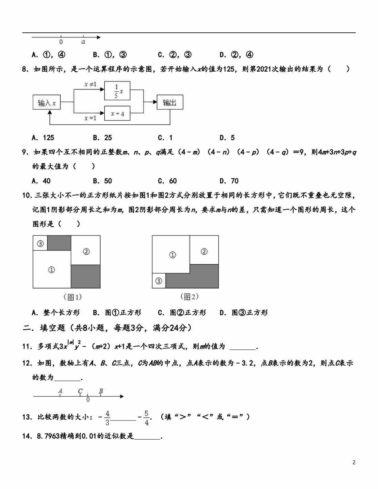 七年级数学上学期期中【全真模拟卷01】(人教版)(原卷版)