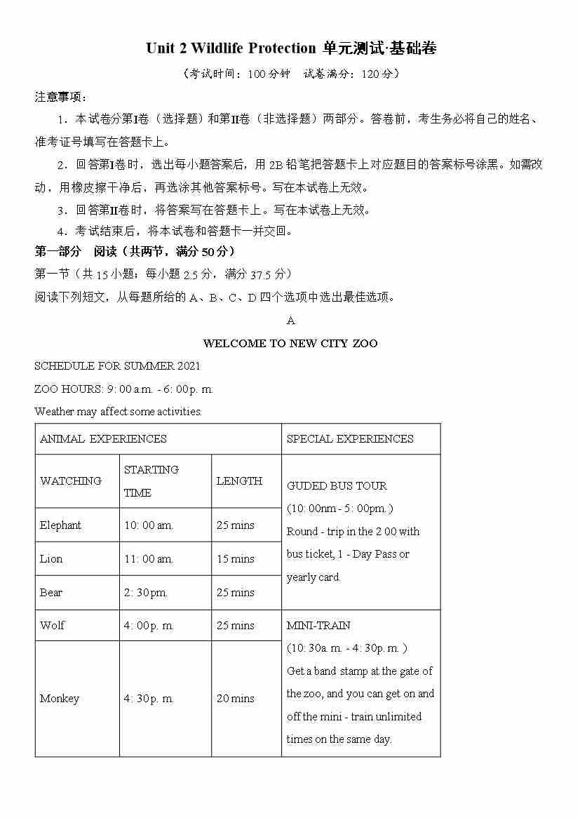 首页 > 全部 > 单元测试 > Unit 2 Wildlife Protection单元测试·基础卷(解析版)