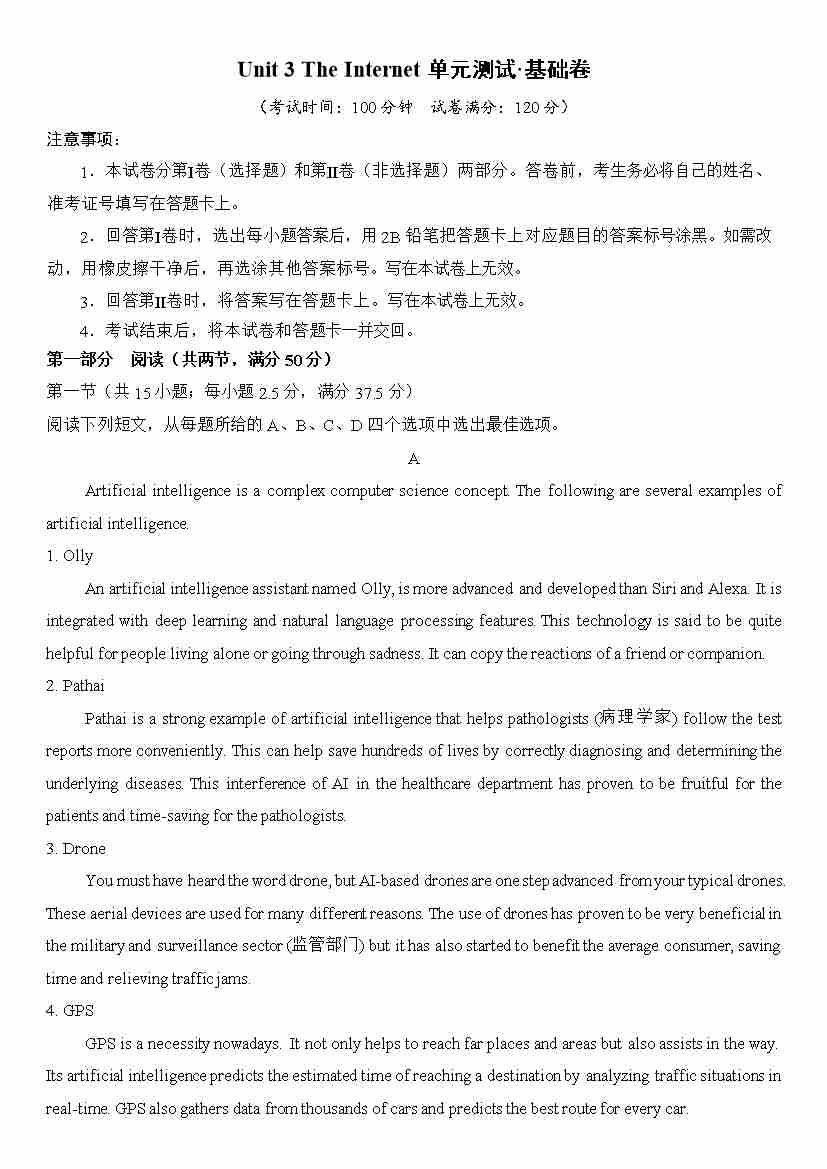 首页 > 全部 > 单元测试 > Unit 3 The Internet单元测试·基础卷 (原卷版)