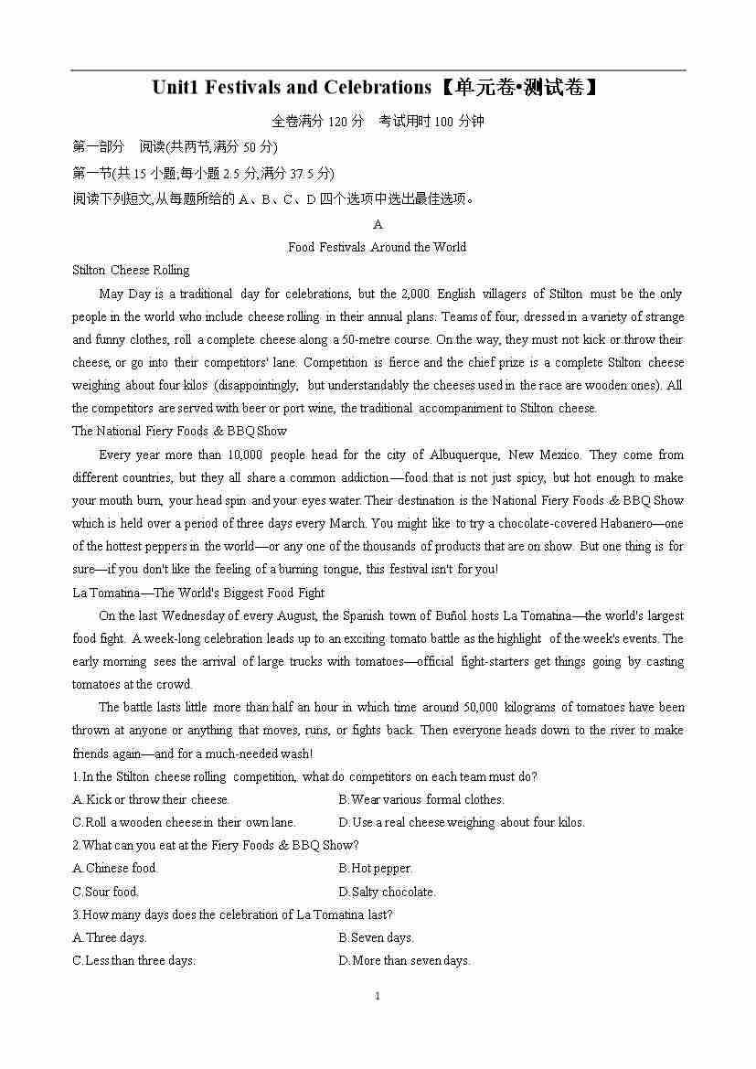 首页 > 全部 > 单元综合卷 > Unit1 Festivals and Celebrations【单元卷•测试卷】(解析版)