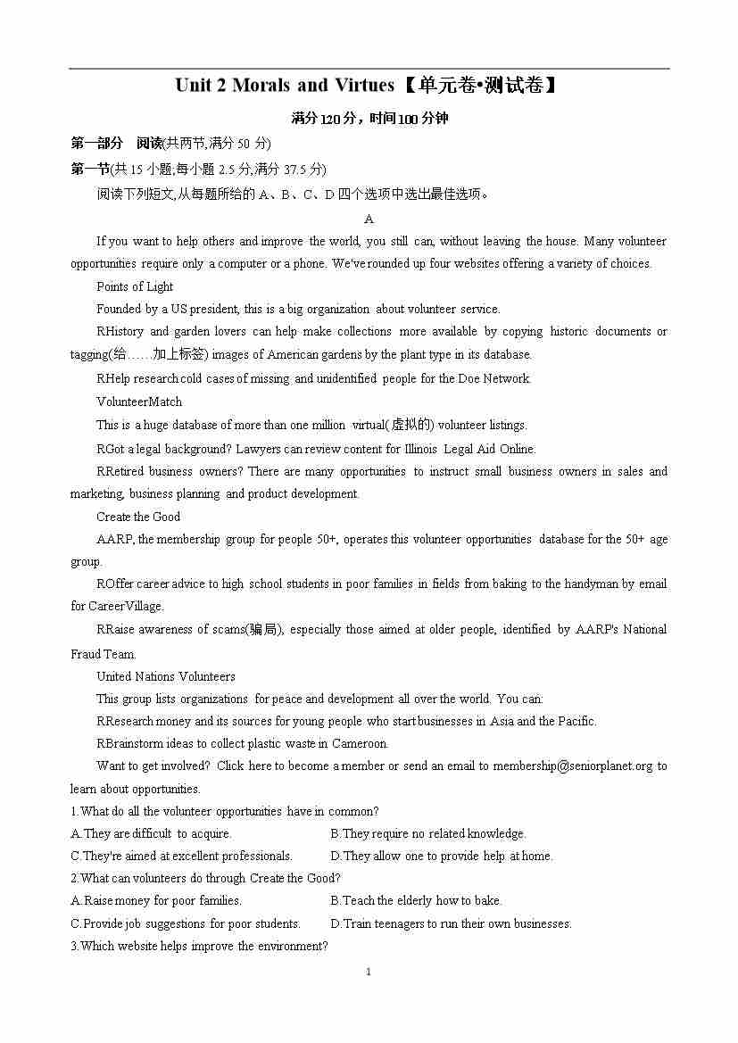 首页 > 全部 > 单元综合卷 > Unit 2 Morals and Virtues【单元卷•测试卷】(原卷版)