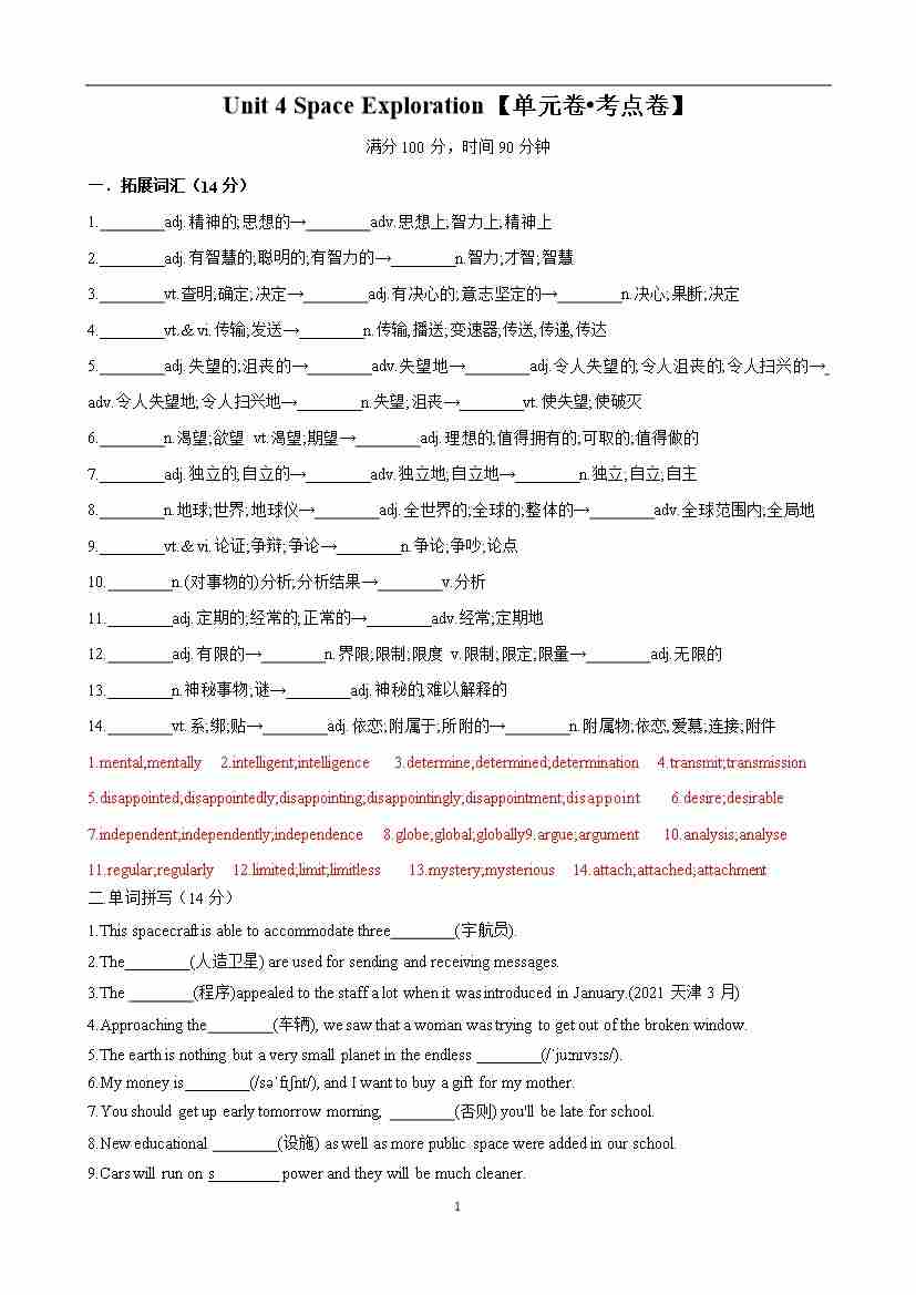 Unit 4 Space Exploration【单元卷•考点卷】(解析版)