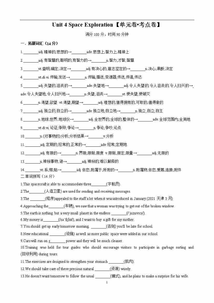 首页 > 全部 > 单元测试卷 > Unit 4 Space Exploration【单元卷•考点卷】(原卷版)