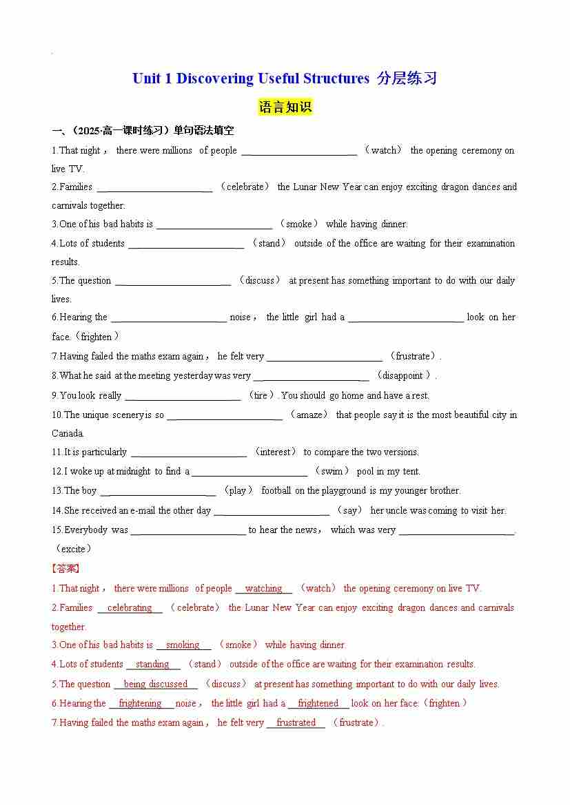 Unit 1 Discovering Useful Structures 分层练习(解析版)--- 【上好课】2024-2025学年高一英语同步精品课堂(人教版2019必修第三册)
