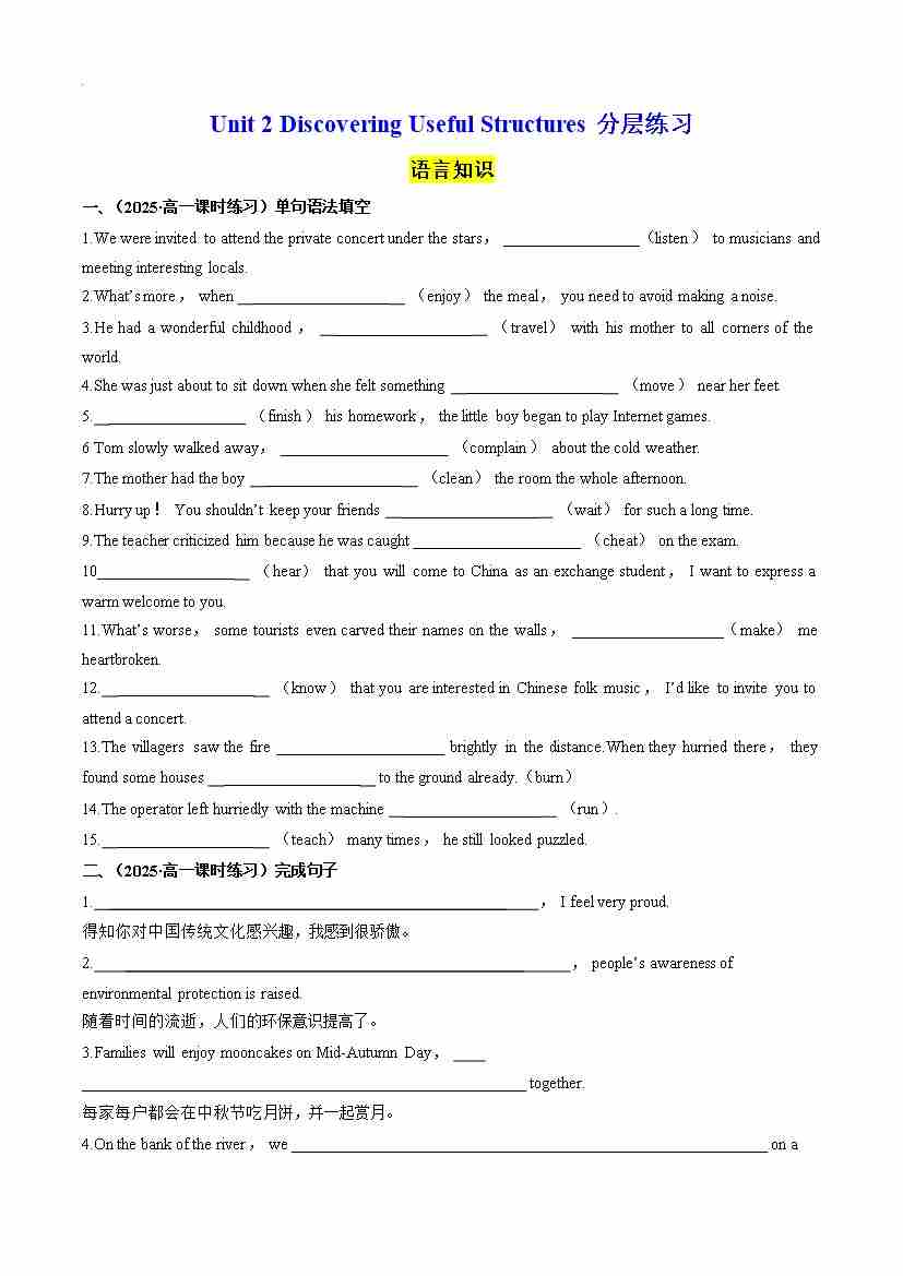 Unit 2 Discovering Useful Structures 分层练习(原卷版)--- 【上好课】2024-2025学年高一英语同步精品课堂(人教版2019必修第三册)