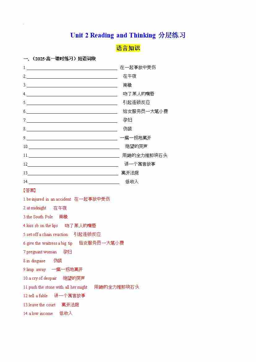首页 > 全部 > 分层作业 > Unit 2 Reading and Thinking 分层练习(解析版)--- 【上好课】2024-2025学年高一英语同步精品课堂(人教版2019必修第三册)
