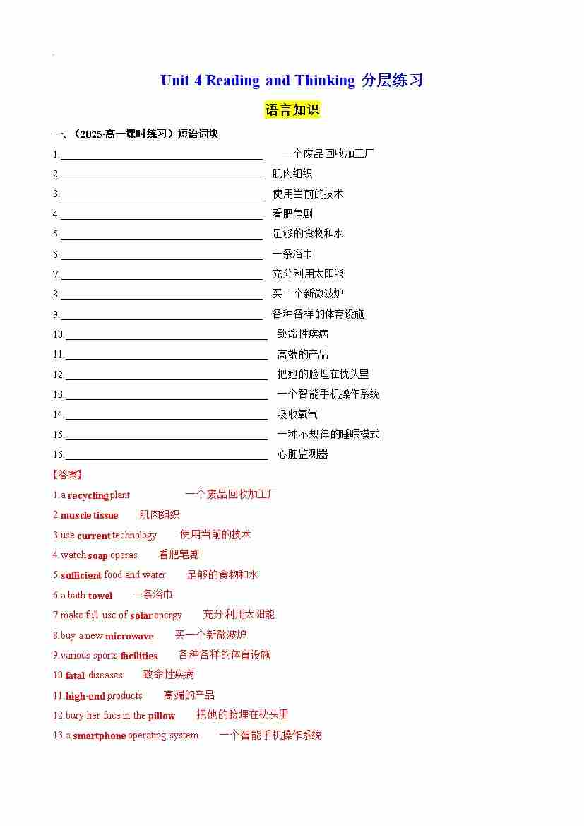 首页 > 全部 > 分层作业 > Unit 4 Reading and Thinking 分层练习(解析版)--- 【上好课】2024-2025学年高一英语同步精品课堂(人教版2019必修第三册)